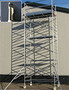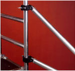 De stabilisator wordt aan het frame bevestigd met een kunststof koppeling, deze is makkelijk in gebruik en brengt geen beschadiging aan het frame toe. Is verplicht bij een werkhoogte vanaf 6.00 m bij een brede steiger, en vanaf 4.00 m bij een smalle steiger.